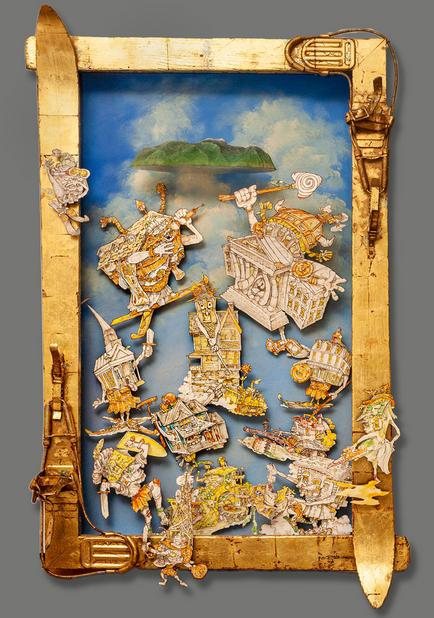 15' long by 7'h. x 4'w. Wood and Mixed Media